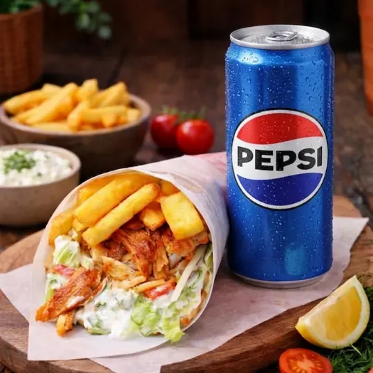Gjiro Gici, sallatë, qep, domate, patate, salcë kosi + Coca-Cola®